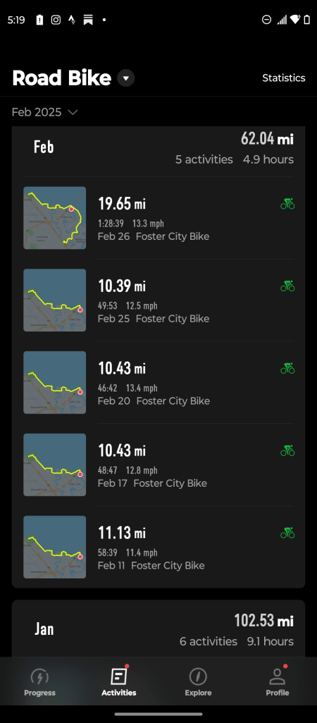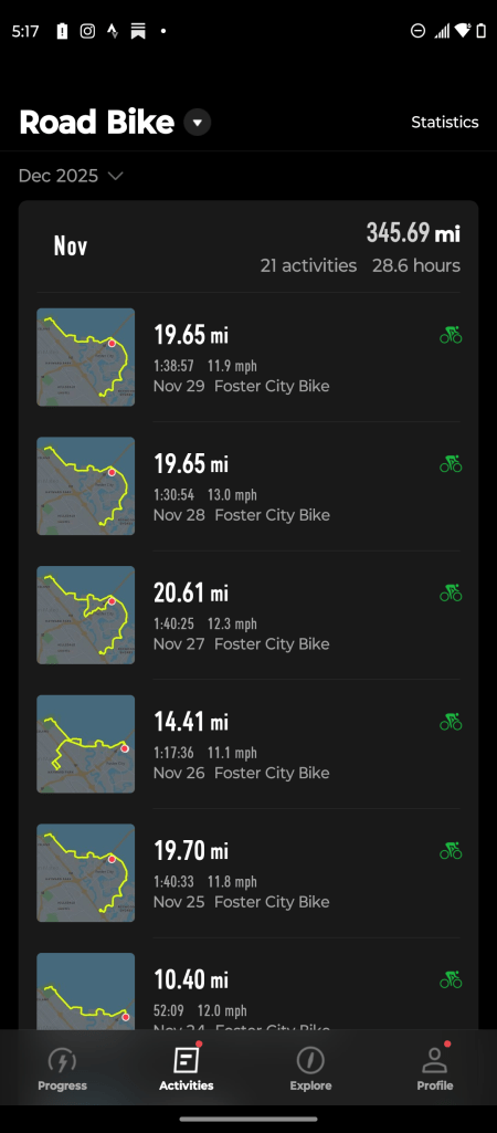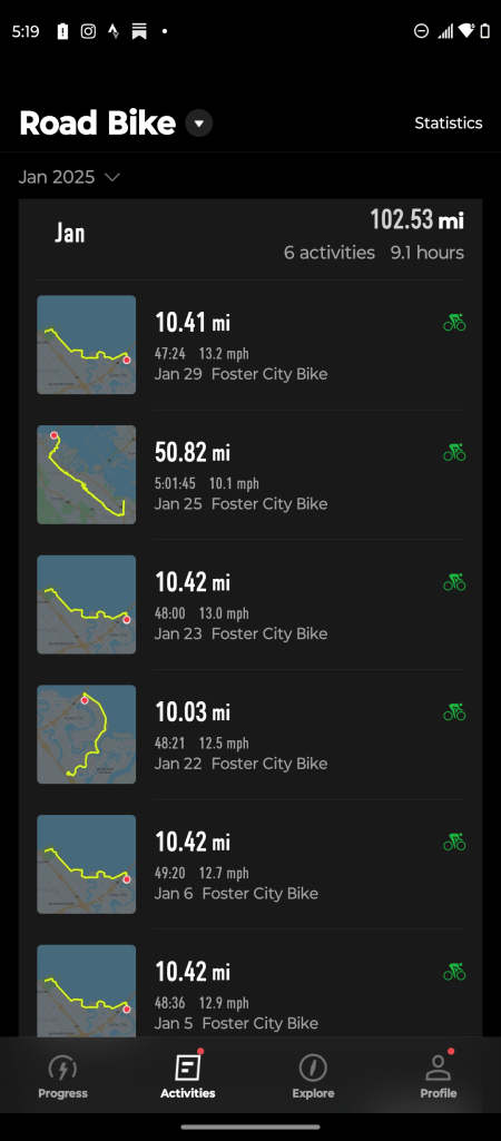 A year ago, my Coros smart watch showed more than 1,000 bicycling miles for 2024. I figured I could double that figure in 2025, but did not call it a goal.