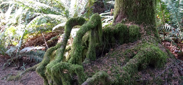 Between waterfalls, the trail meanders along a creek and through dense forests of fern and moss in every shade of green you can imagine and some you can’t.