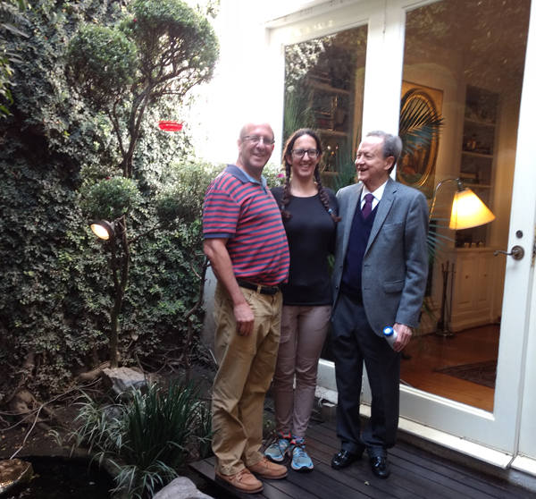 We Ubered to his home in Polanco, where his housekeeper, Rosario, and dog, Max, greeted us. We waited in his living room amid beautiful art and furniture, gazing at his garden courtyard. He descended his staircase dressed perfectly in tie, cuffed white shirt, tailored trousers, vest, herringbone jacket, gleaming loafers, and red and blue striped socks to match his tie.