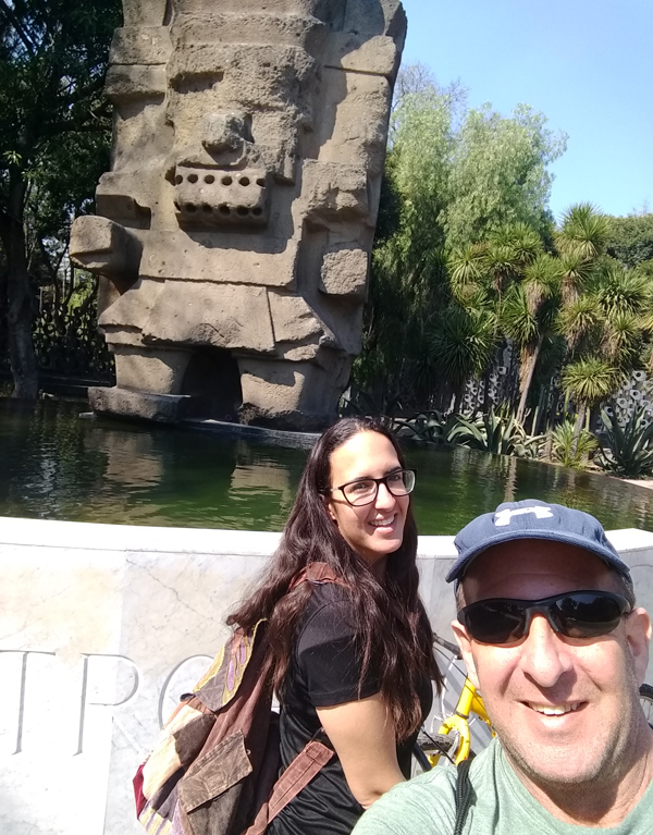 Billy drove us aggressively in his Benz to Museo Nacional de Antropología. It’s a world-class museum, also in Chapultepec, that we had skipped in favor of the outdoors during our prior day in the park. Between hugs and long good-byes, Billy recommended we visit the outdoor statue of Tlaloc, the rain god, a 23-foot tall, 300,000-pound monolith that was moved, despite much controversy, from Coatlinchan to its current location, and upon installation in 1964 was blamed for historic rains in Mexico City.