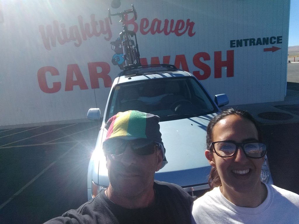 The need for gas, to lower more Cane’s, to replenish our beef jerky supply, and to stop in a town called Beaver led us to stop in Beaver, Utah. Inside the gas station convenience store with my Rasta-colored gaiter/do-rag now serving as a Covid mask, I made eye contact and raised a fist in solidarity with a young woman wearing a Black Lives Matter t-shirt. Her eyes smiled back, and I pointed to her shirt and said, “Eleni, look what we found. In Utah!” The other prizes we found there were Scotty’s jerky and an “I Love Beaver” sticker to mail to my father.