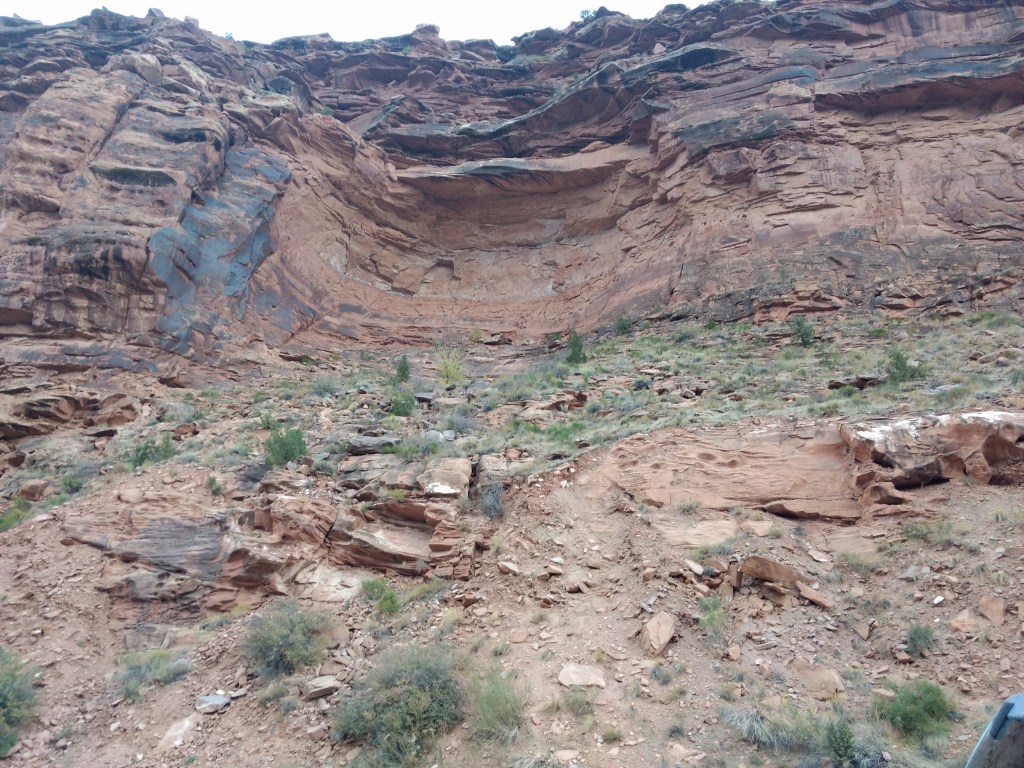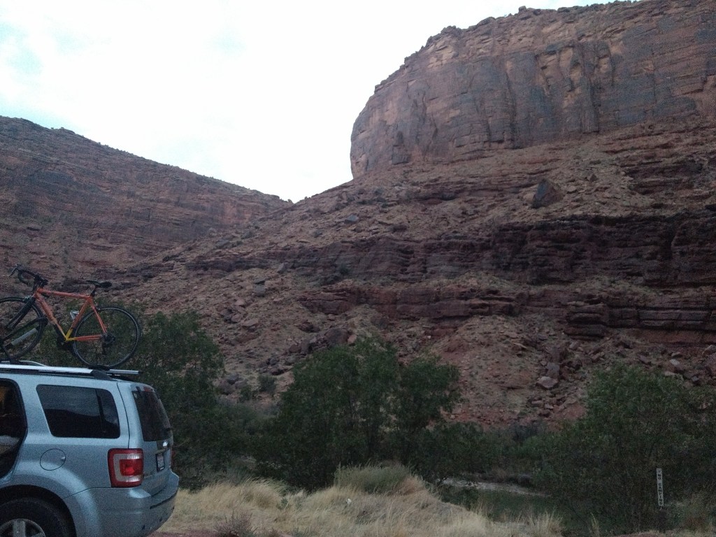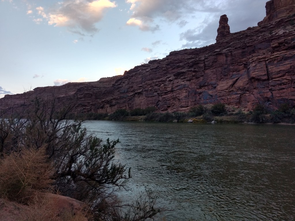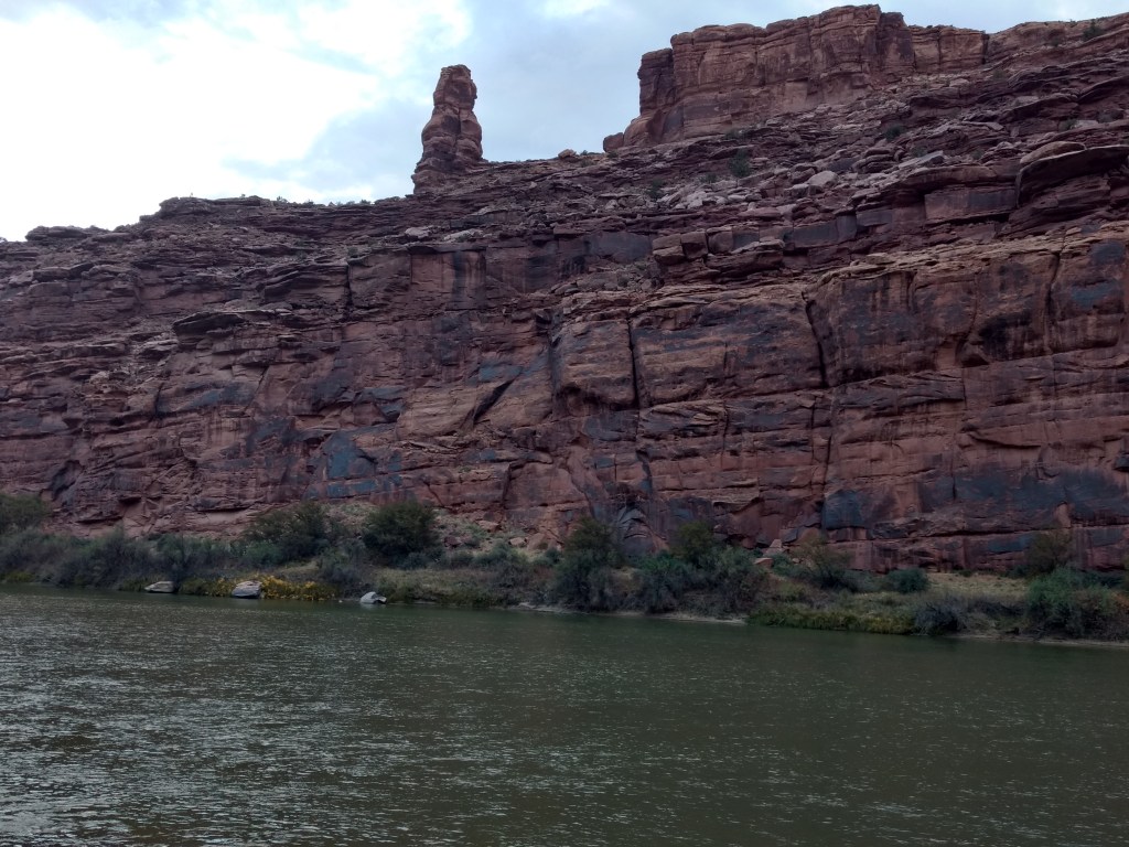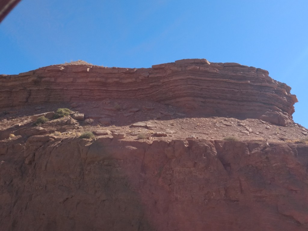 At dark, we drove into Moab for a light bite and drove back out 128 to a boondock site.The next morning, we woke up at 6:30, did gymnastics into the front seat, and bee-lined past the rock faces visible in the dawn for the Denny’s at the edge of town. It was closed. I’d never seen a closed Denny’s. It was open the night before. Maybe it was a fluke Covid-related event. As cosmically disconcerting as a closed Denny’s was, we accepted the universe’s gentle nudge toward the much more mom-and-pop Jailhouse Café for coffee and what their menu listed as “soul bacon,” which was bacon.