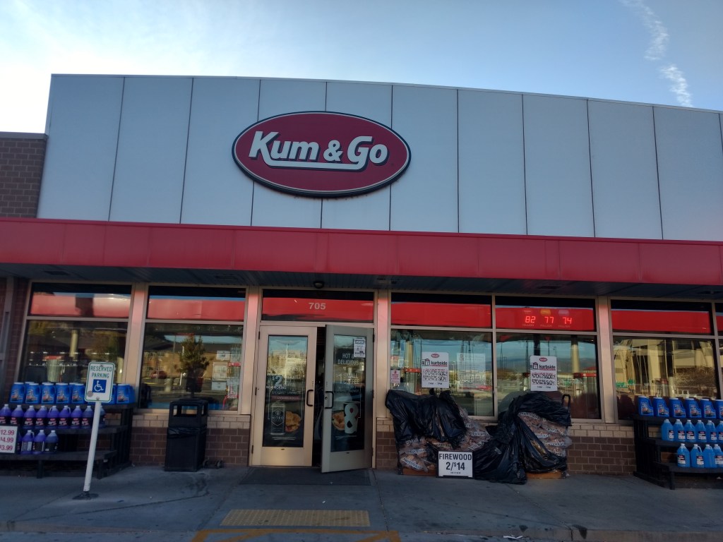 Our last gas stop was at a Kum & Go. When I snapped a photo of the sign, Eleni asked if that was to accompany the Beaver sticker I’d bought for her grandfather.