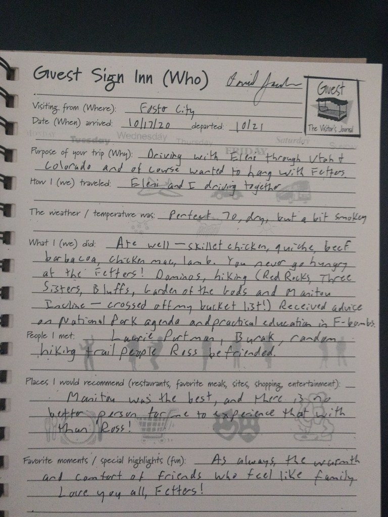 This road trip formed about six months into the pandemic. Eleni’s friends invited her to Colorado, and she asked if I would join her. Restless and road hungry, work schedules scuttled, we would handle our obligations remotely. Zoom let us zoom. We had friends and country to see.