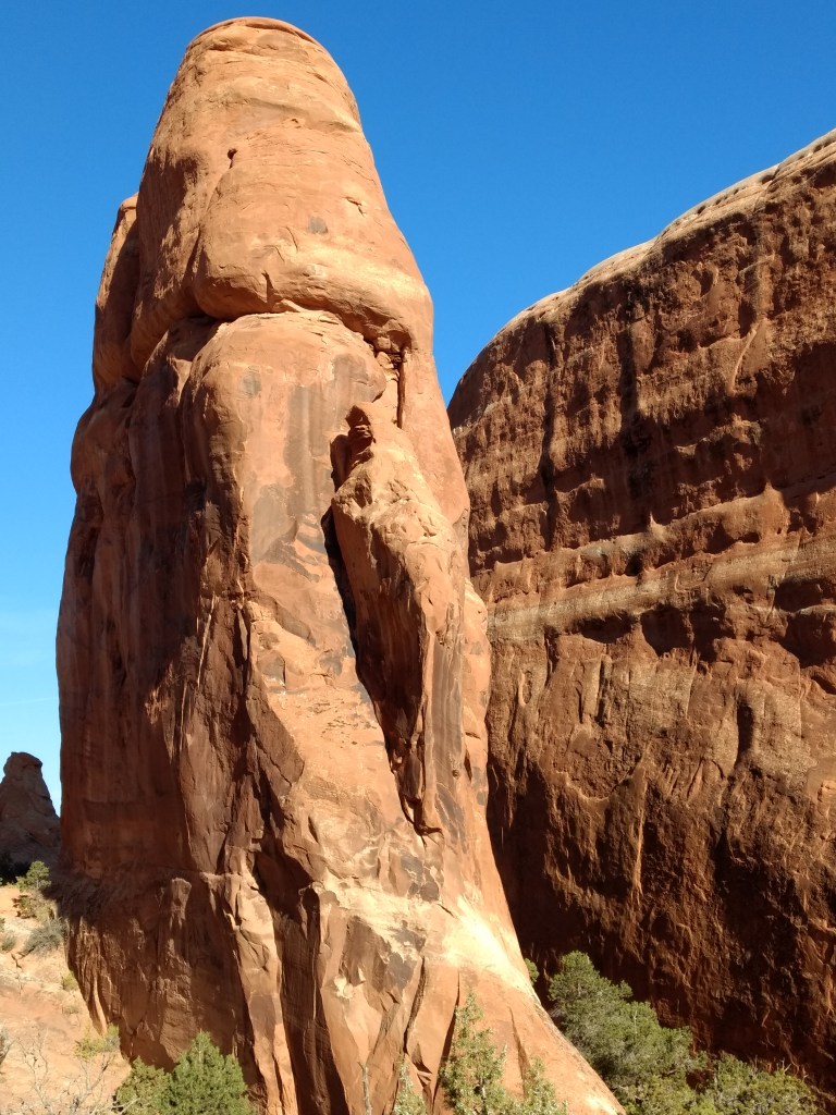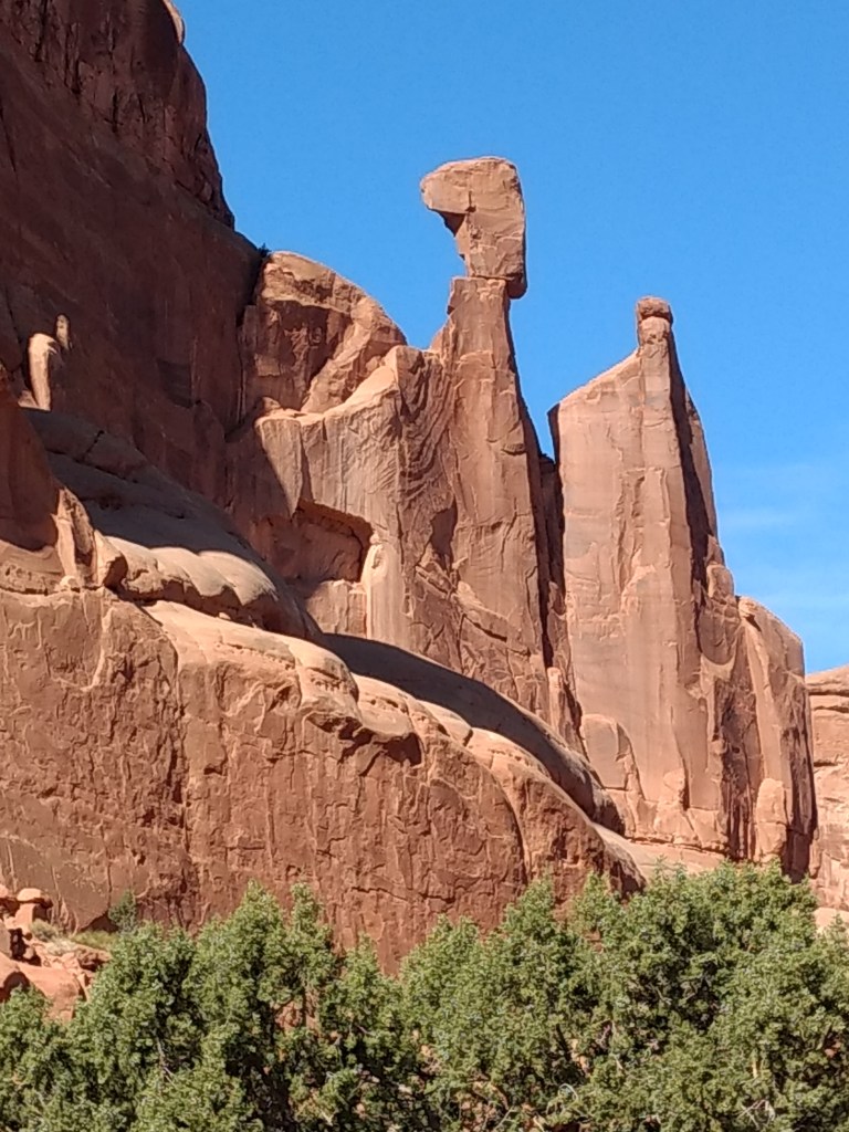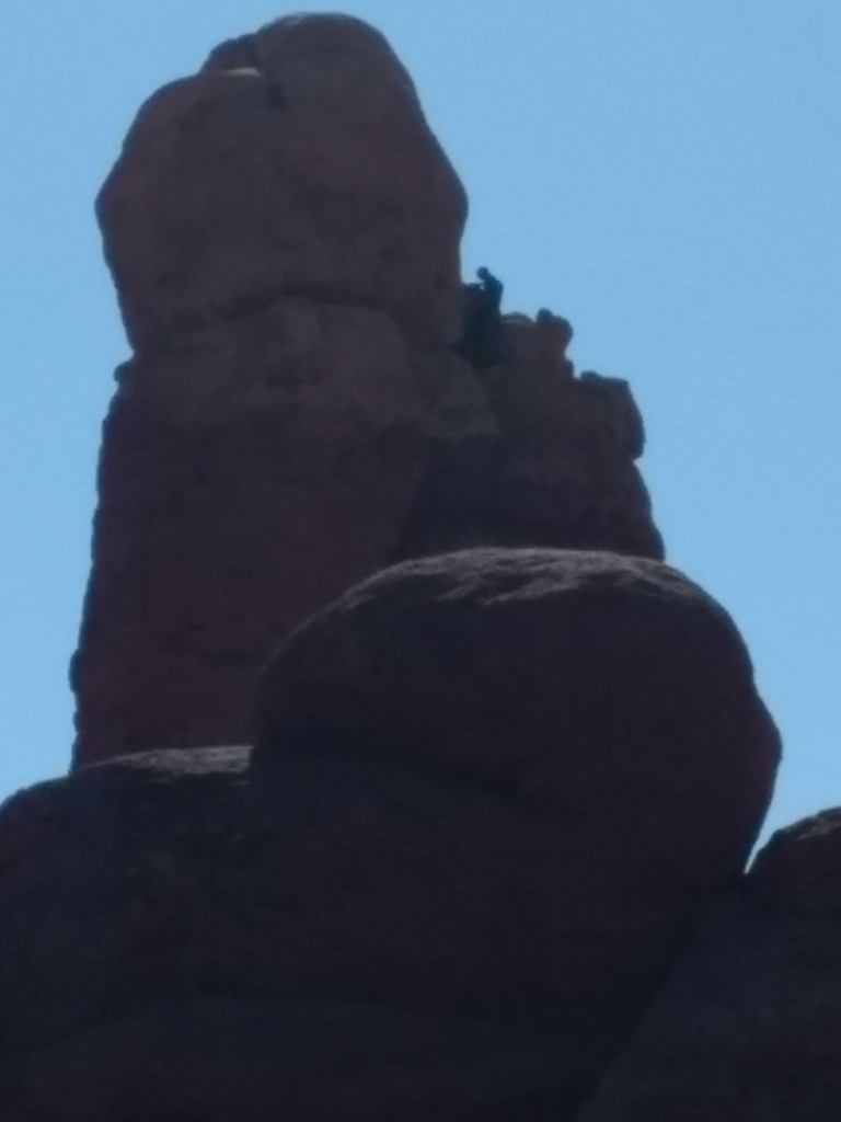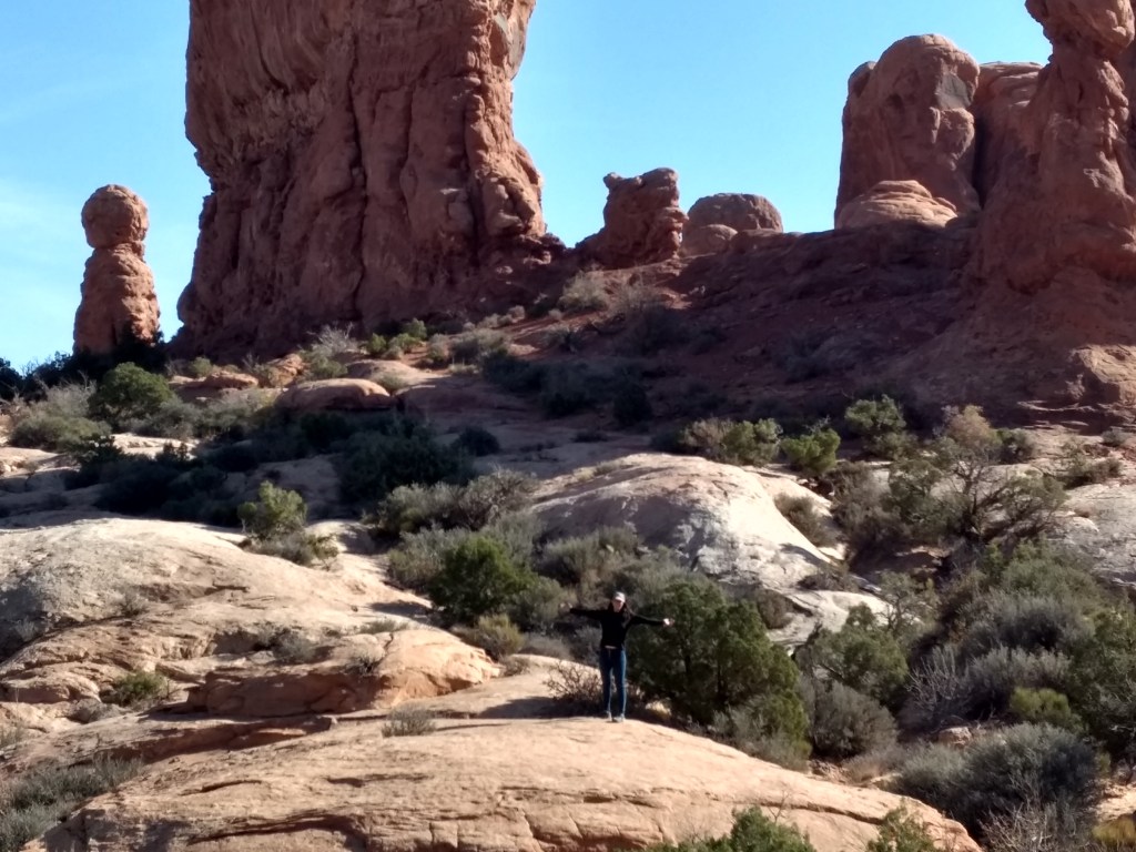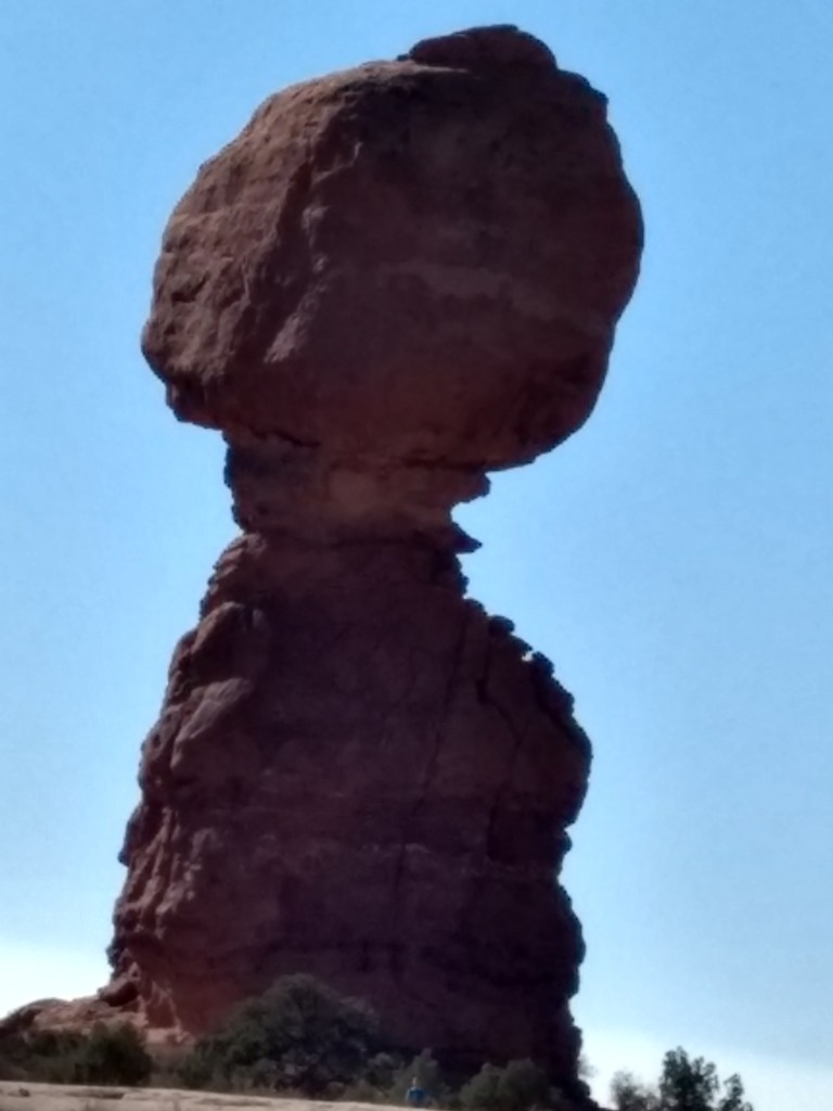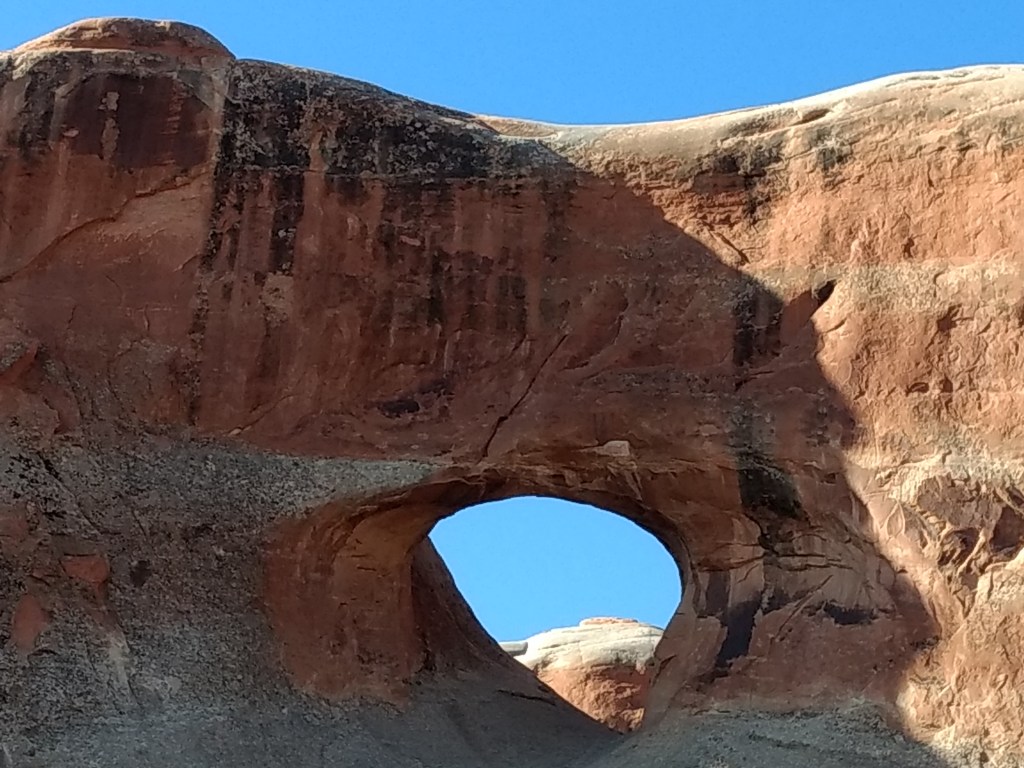 Arriving at Arches around 8 a.m., it was too late to hike out to Delicate Arch for sunrise or whatever you’re supposed to do, so we just drove and checked stuff out and stopped whenever something awed us more than whatever else was aweing us. We made friends with random hikers, like the guy in a Bears sweatshirt and Cubs hat, who I talked sports and neighborhoods with, and then a little Latino kid, sprinting ahead of his family in a walking cast for his broken foot, but irrepressible and oblivious to pain just to be free in such beauty.
