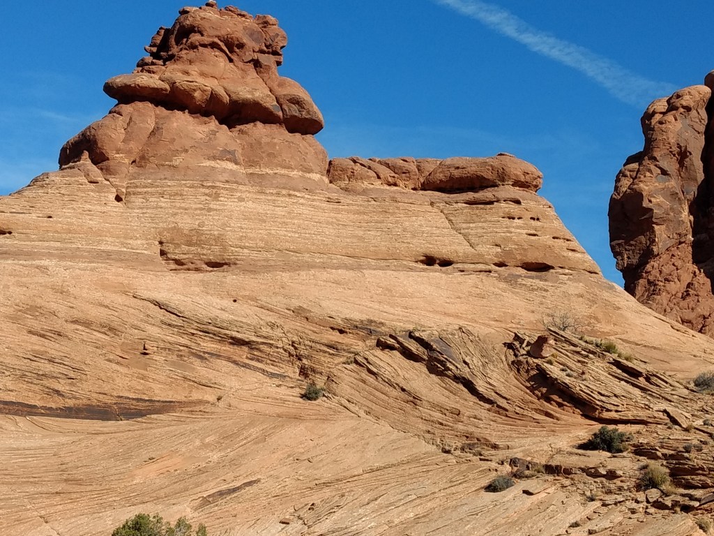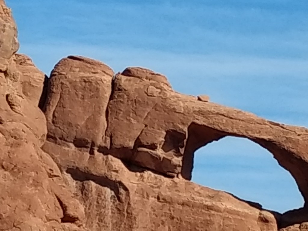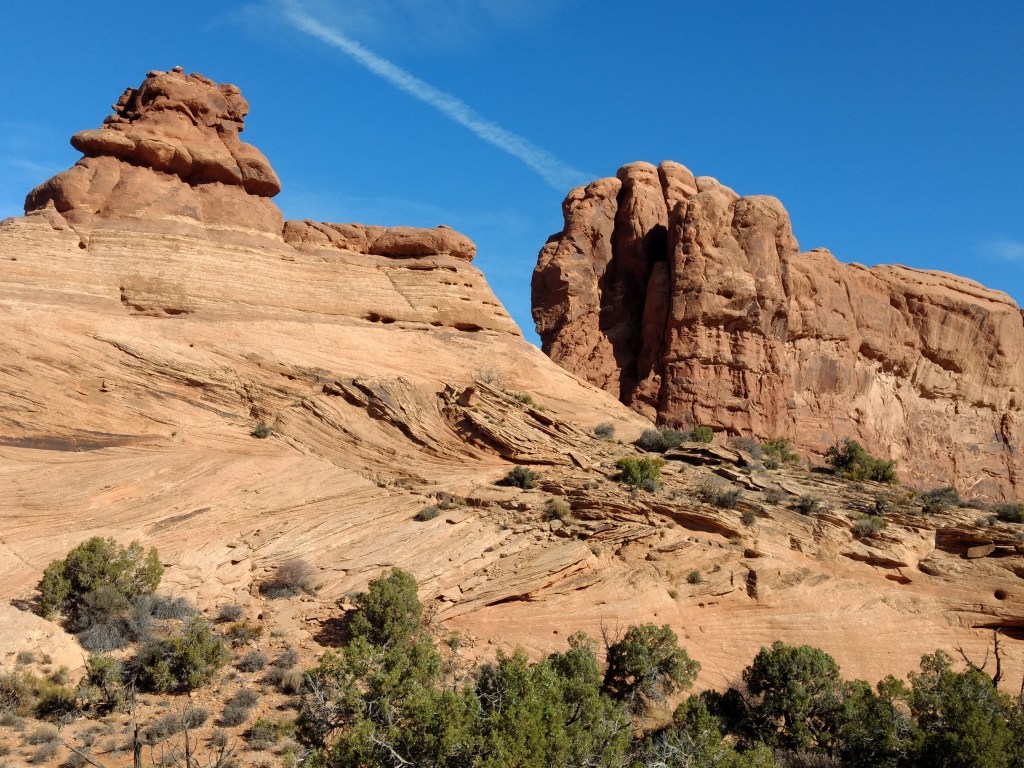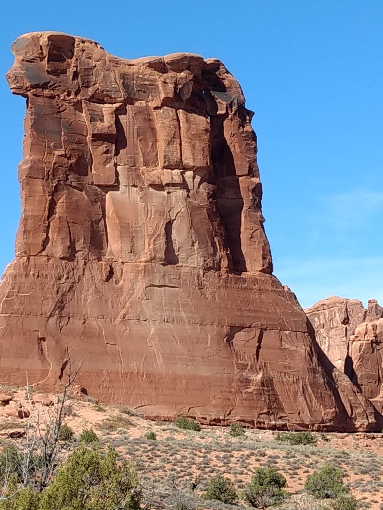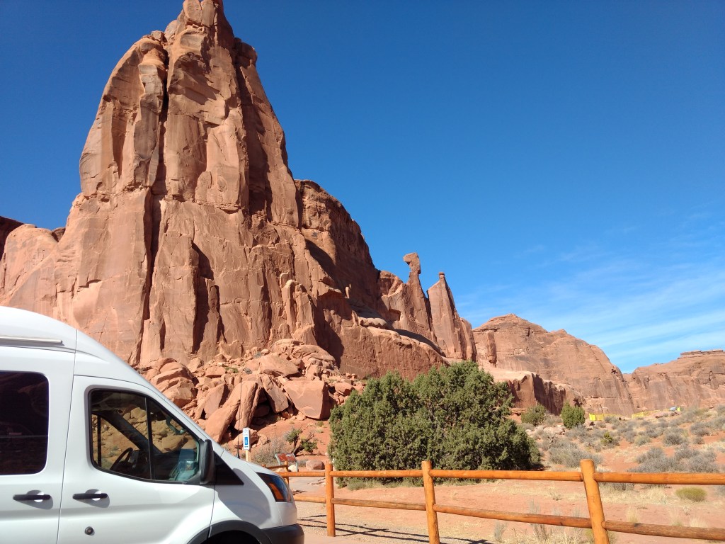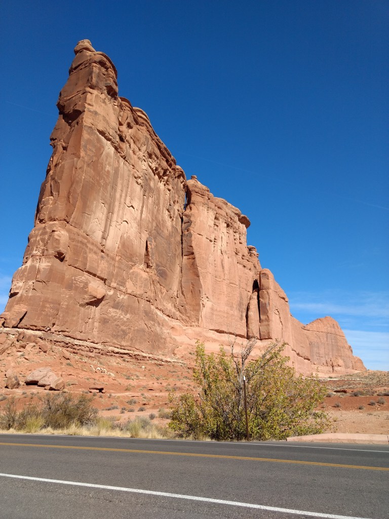Arriving at Arches around 8 a.m., it was too late to hike out to Delicate Arch for sunrise or whatever you’re supposed to do, so we just drove and checked stuff out and stopped whenever something awed us more than whatever else was aweing us. We made friends with random hikers, like the guy in a Bears sweatshirt and Cubs hat, who I talked sports and neighborhoods with, and then a little Latino kid, sprinting ahead of his family in a walking cast for his broken foot, but irrepressible and oblivious to pain just to be free in such beauty.